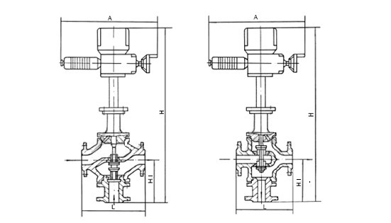 電動三通調(diào)節(jié)閥 主要外形尺寸