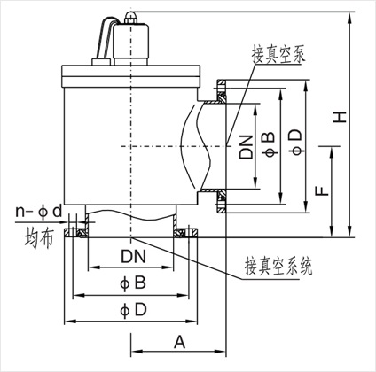 DYC-JQ型系列電磁真空壓差式充氣閥,是安裝在機械真空泵上的專用閥門。安裝于機械真空泵的進氣口,并于泵同步開啟和關閉。當泵停止工作或電源突然中斷時,閥門能依靠大氣與真空的壓差力使閥板自動關閉,將真空系統(tǒng)封閉,保持其真空度,并將大氣通過閥的節(jié)流孔充入泵腔內(nèi),從而避免泵油逆流污染真空系統(tǒng)。