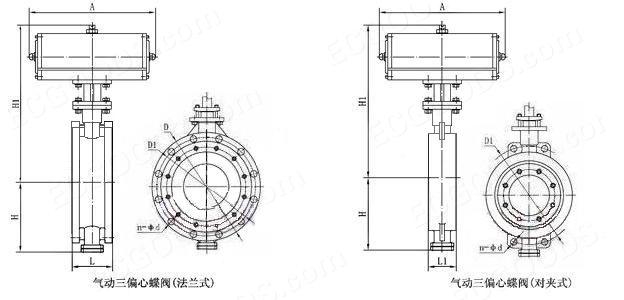 Main technical parameters of pneumatic three eccentric butterfly valve
