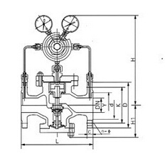 YK43X氣體減壓閥屬于先導(dǎo)活塞式減壓閥.由主閥和導(dǎo)閥兩部分組成.主閥主要由閥座、主閥盤、活塞、缸套、彈簧等零件組成。導(dǎo)閥主要由閥座、閥瓣、膜片、彈簧、調(diào)節(jié)彈簧等零件組成。通過調(diào)節(jié)調(diào)節(jié)彈簧壓力設(shè)定出口壓力,利用膜片傳感出口壓力變化,通過導(dǎo)閥啟閉驅(qū)動(dòng)活塞調(diào)節(jié)主閥節(jié)流部位過流面積的大小,實(shí)現(xiàn)減壓穩(wěn)壓功能。