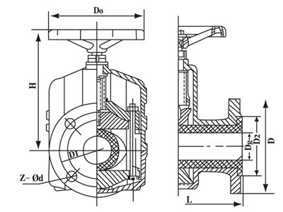 當順轉手輪時,使大小閥桿同時帶動上下閘板,壓縮管套,進行關閉,反轉即行開啟,這樣,閘板在導柱之間上下往復完成閥門開閉工作。另外,因橡膠管套承力,因此在開關時,操作人員旋轉手輪時只要感到適量抵觸,均己達到開閉點, 切勿盡力或多人輔助,禁用其他工具開閉。